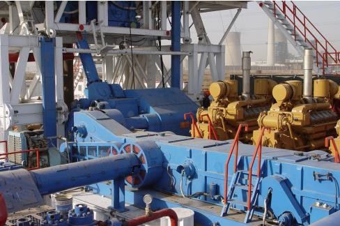 ◆ 機械鉆機是柴油機驅動用鏈條箱并車后驅動絞車和泥漿泵,通過爬臺萬向軸驅動轉盤鏈條箱帶動轉盤。